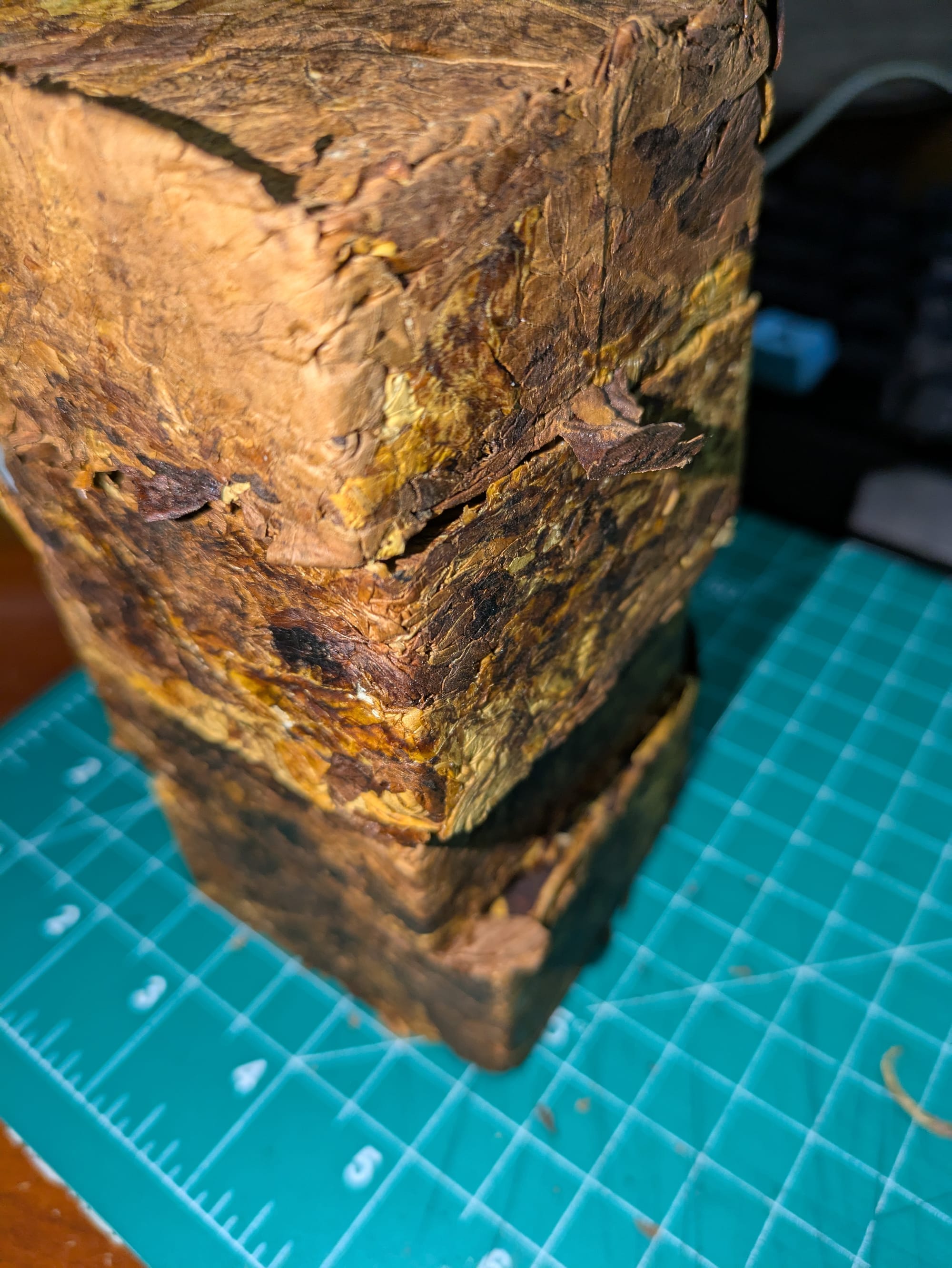 I should let the plugs rest but I couldn't resist taking a slice off and trying it. It is definitely burley! Big bold burley taste with nutty and some chocolate notes. Nice round smoke, nothing harsh even at this young age. Guess I need a name for it or simply just keep the name Burley Plug.