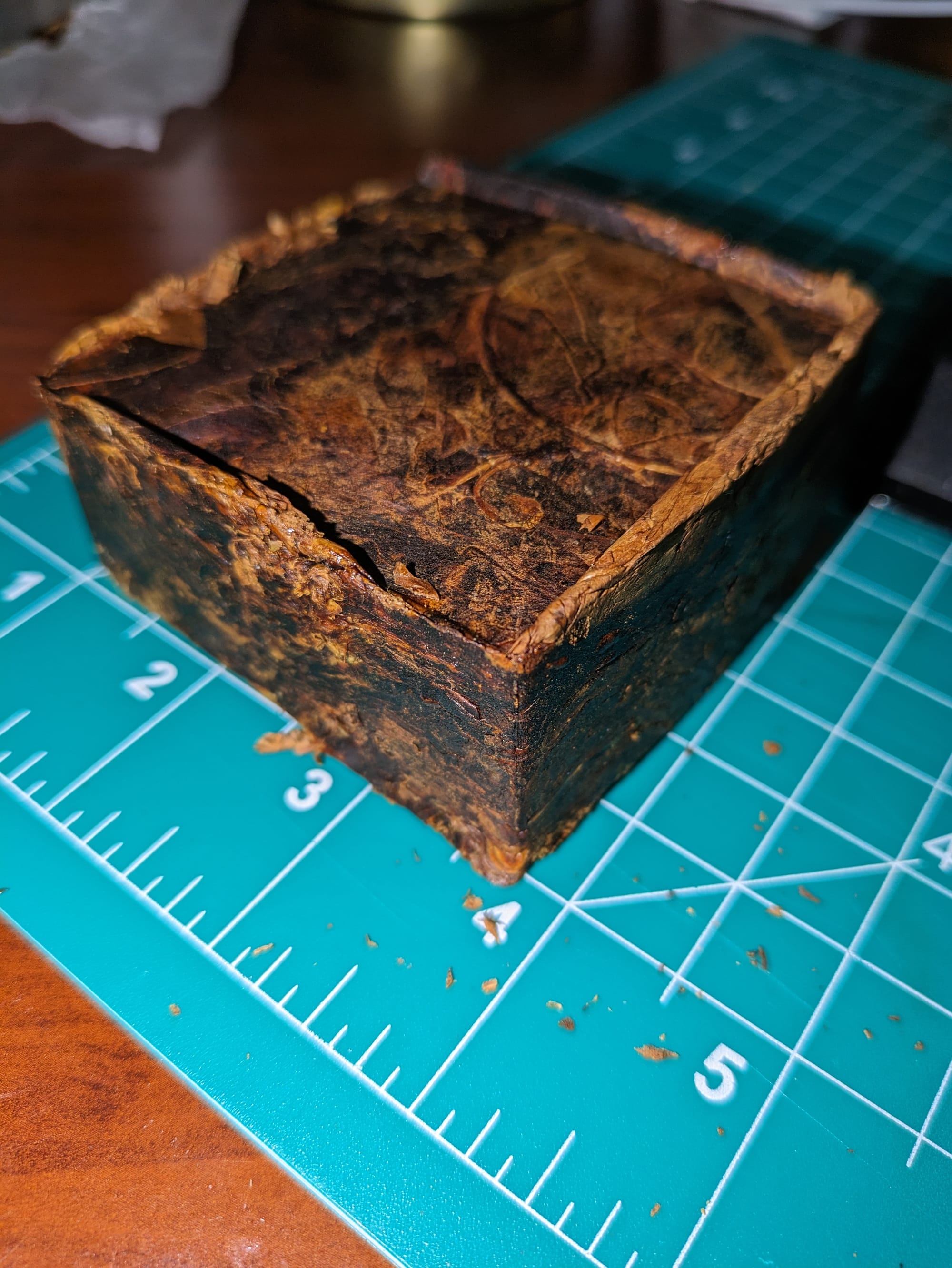 This is a blend of 100g Bright Virginia cased with Tonka bean casing and 100g burley cased with molassas casing. I will let the plug rest for a few days but I am smoking the burnt ends I trimmed off the plug and I have to say, this one is the winner. I will likely end up making all my Grateful Plugs this way!