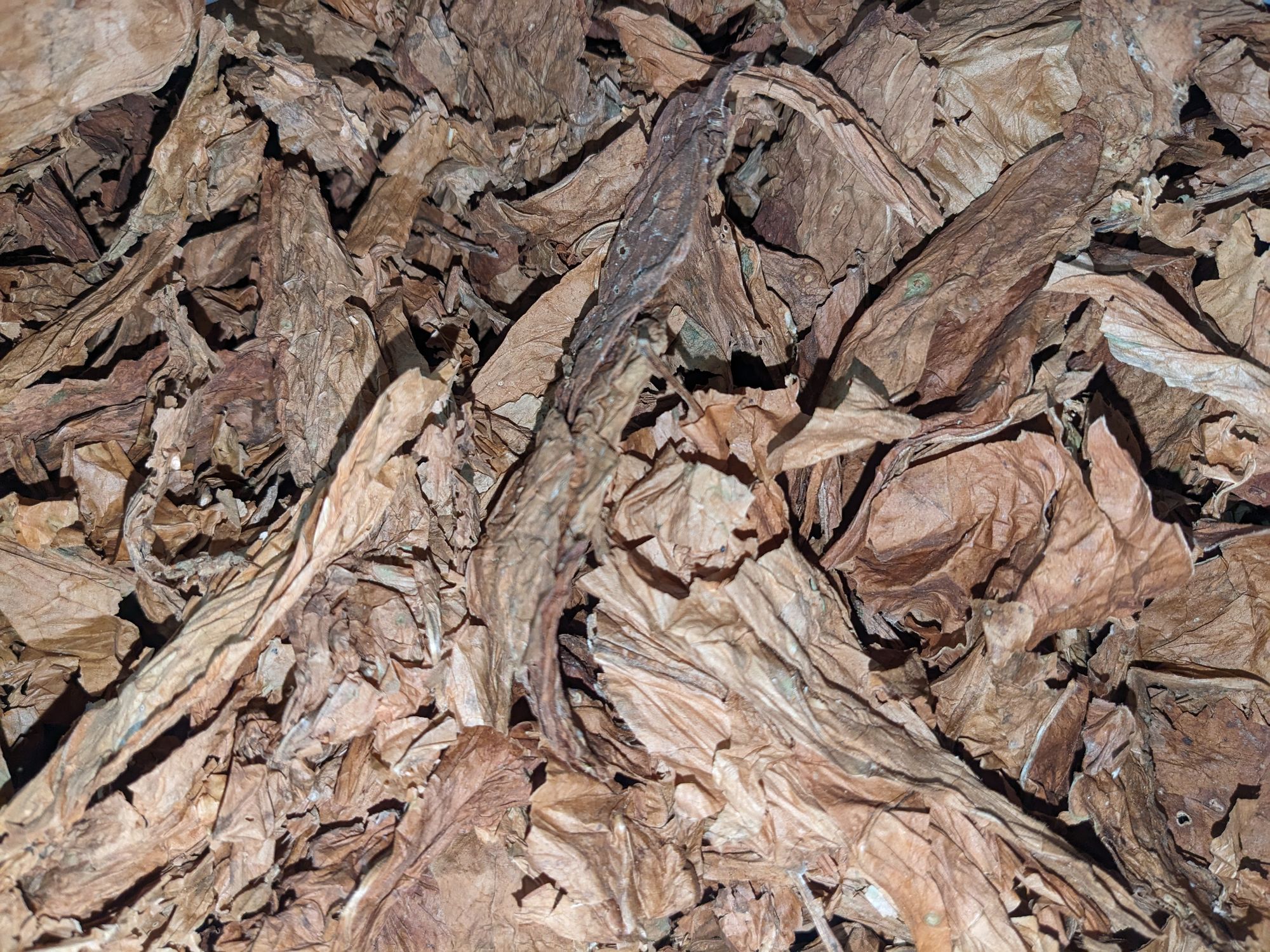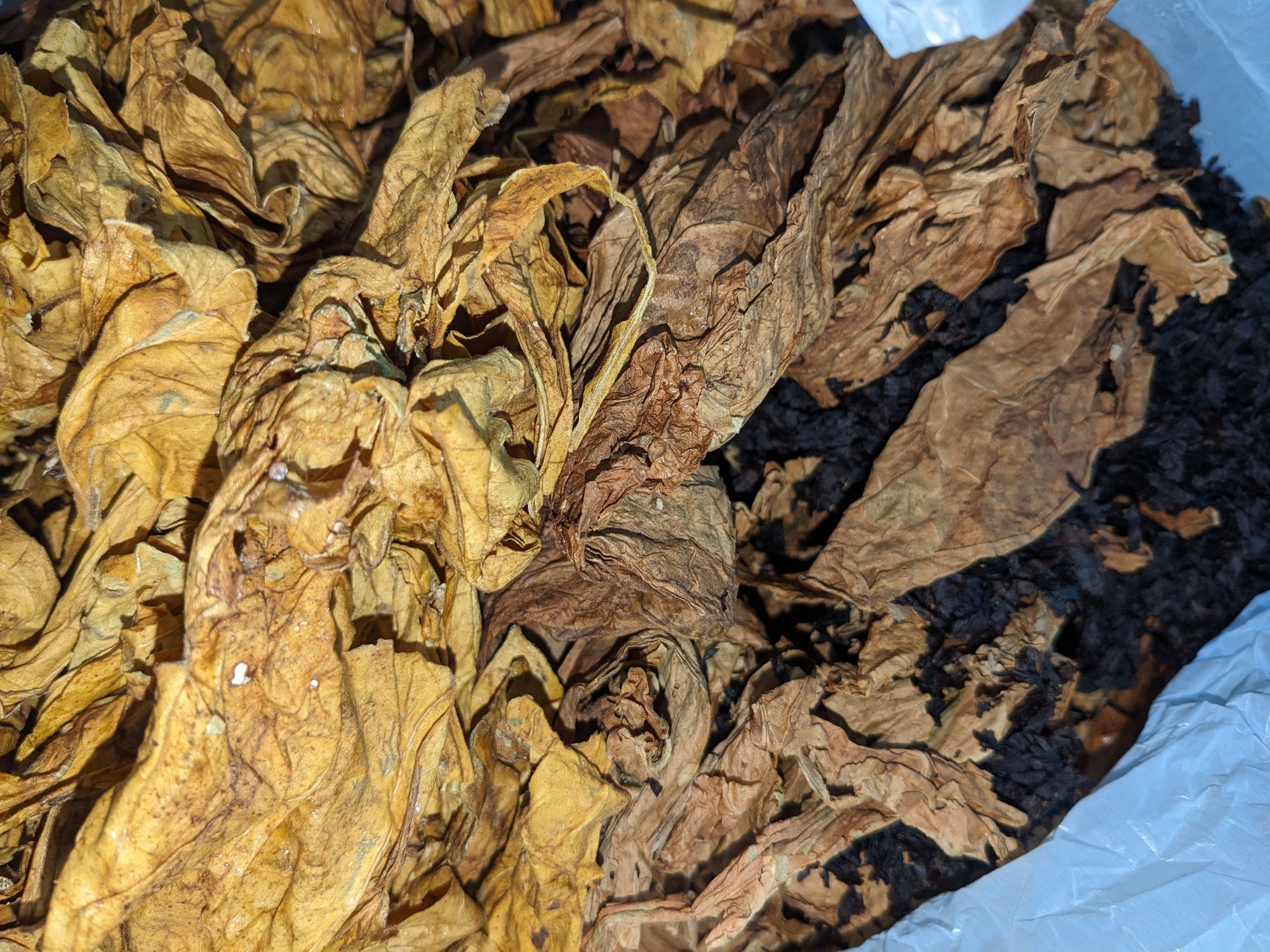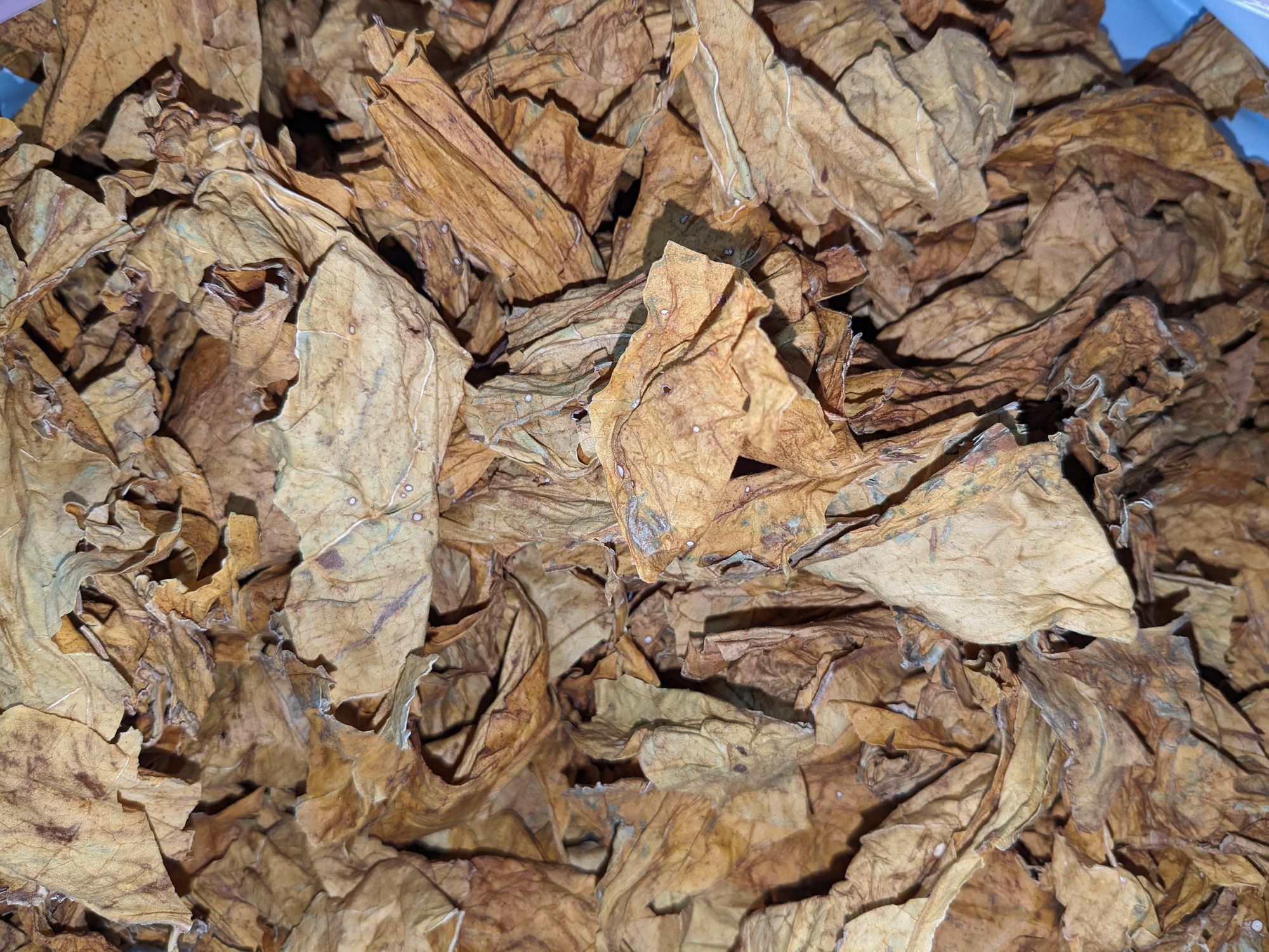 The recipe was simply a matter of math. After stripping the stems for 1lb of whole leaf burley from WholeLeafTobacco.com I ended up with 326g. I also hand shredded the leaves to make it easier to case and blend. I used 2oz of molasses casing and sprayed using a small spray bottle and let the leave rest over night.