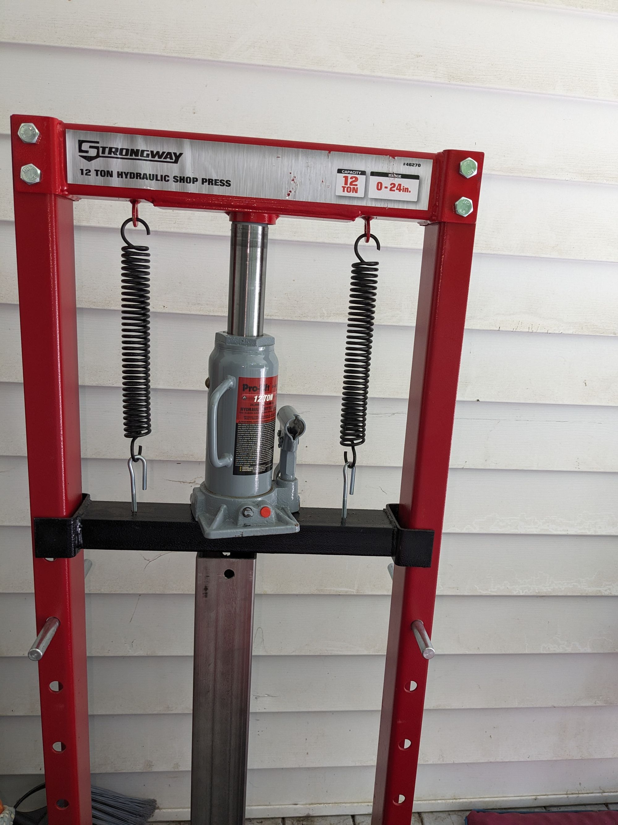 Next dropped it in the frame press and cranked it down until it could not be cranked down anymore. I used a variety of rods of different lengths to get the plugs compacted down. After this I will probably do a poor man's stoving in the truck for a week. Welcome to the south!