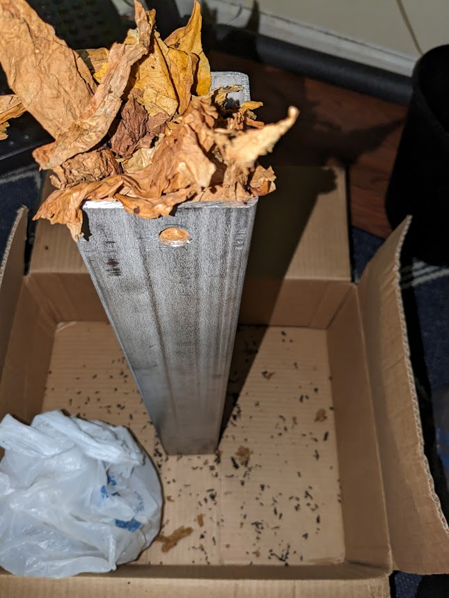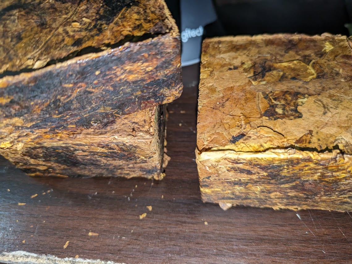 Only change I made was dropping the Cavendish from the mix and did it straight 50/50 Virginia/Burley. The Cavendish was unflavored and granular so it didn't lend itself to whole leaf pressing very well and probably was more a bulk it up rather than add to the experience.