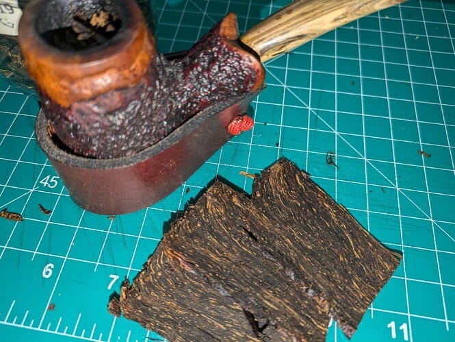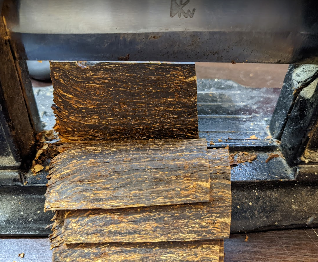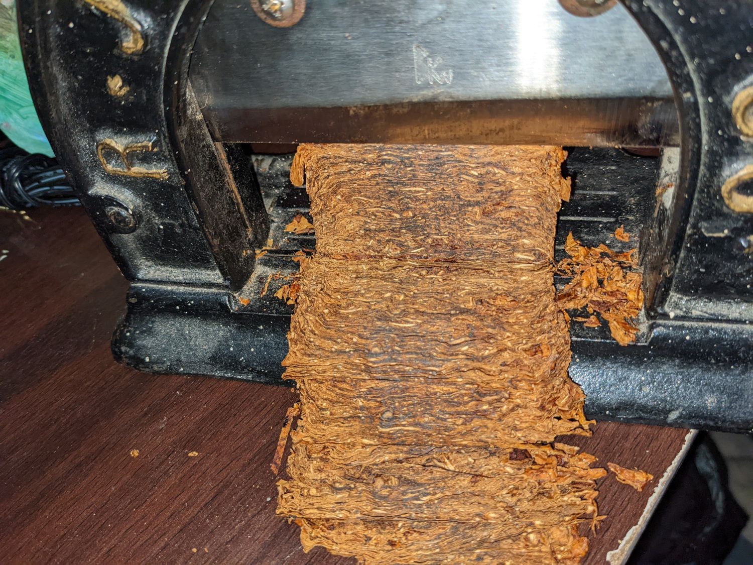 Love red Virginia tobacco and was really hoping this turned out darker than it did but such as life. Using an Old Mule cast iron plug cutter with a new blade by Bingaman Knife Works it makes short work of producing fine flakes.