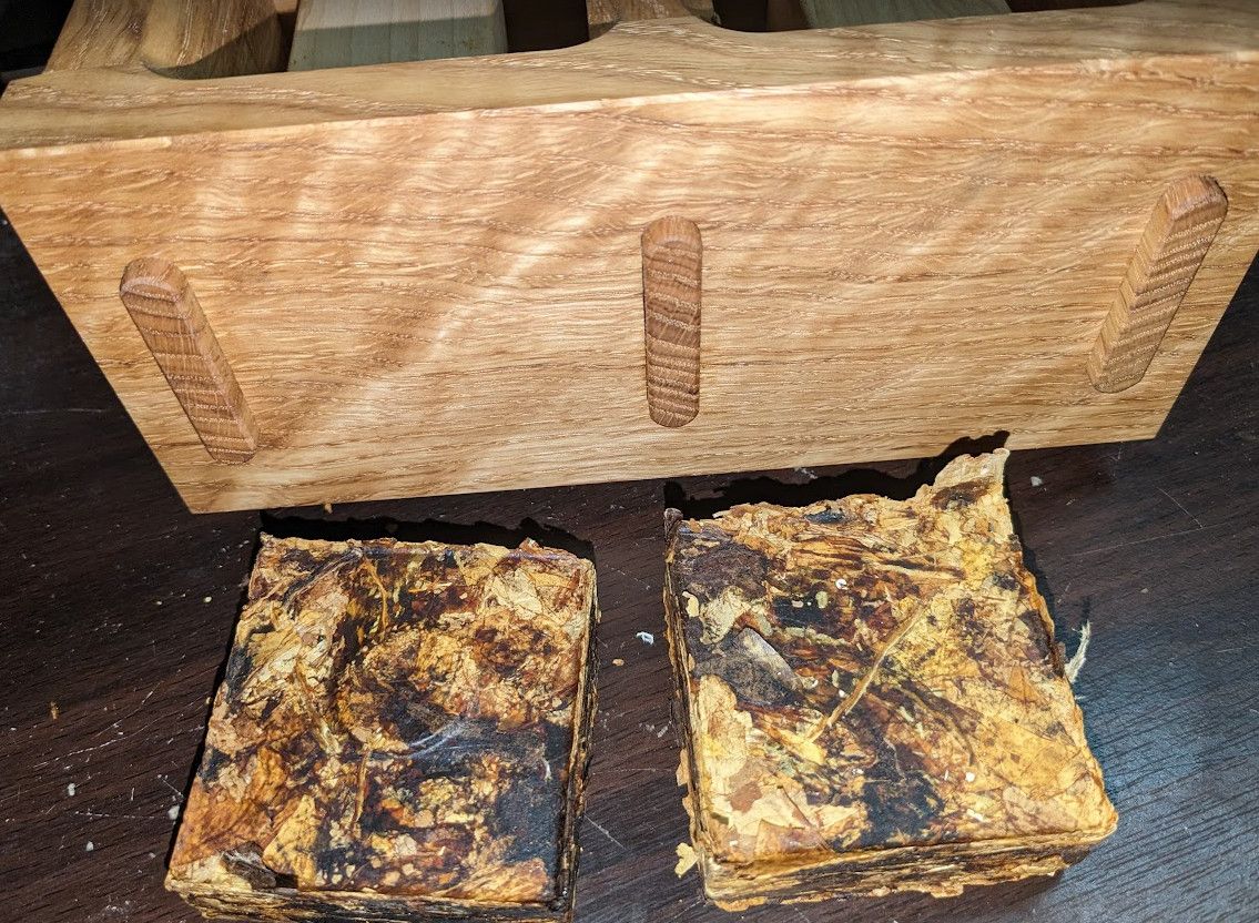 I would have liked to had it pressed during this time and I have been pondering about doing two in the wooden press and one in the metal press then placing all pressed plugs in the metal press with a C-clamp to stove all three plugs at the same time. I will post an update on how that goes.