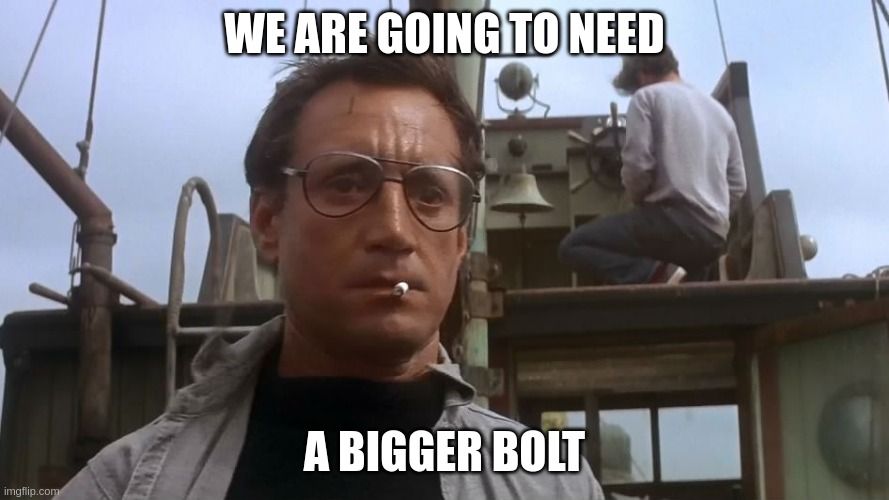 Ok, plan B. Use 1/2″stainless steel bolts instead of 1/4