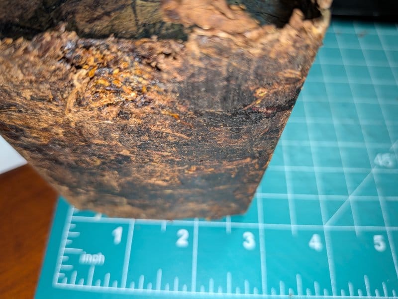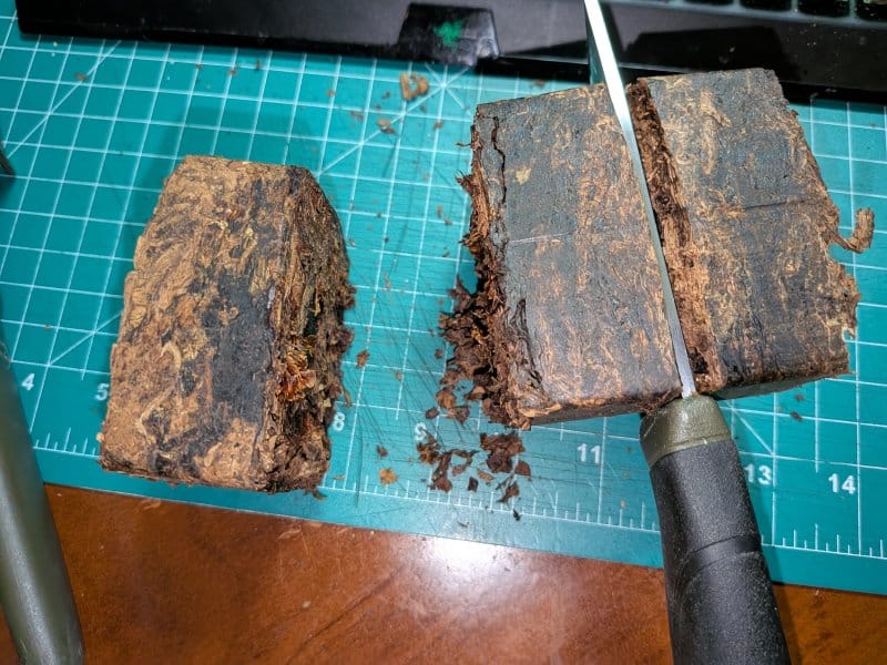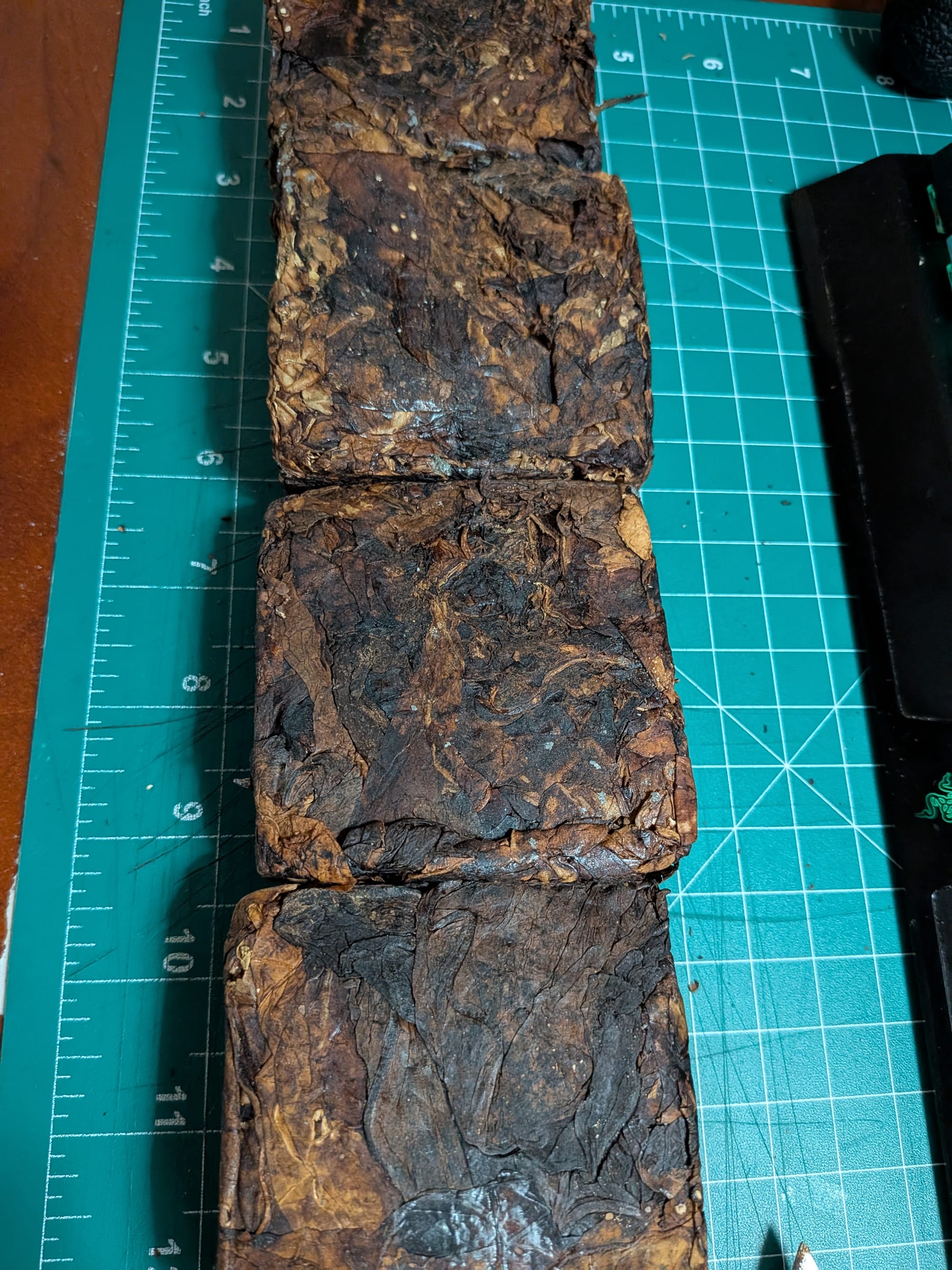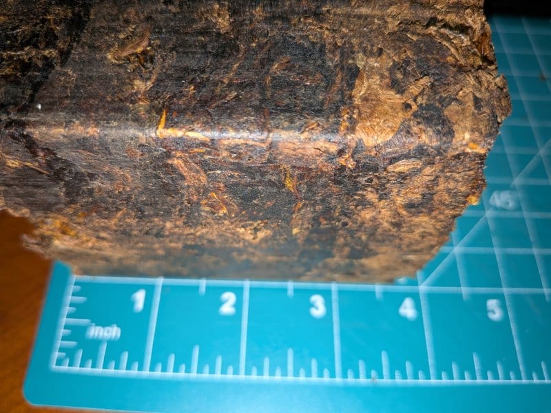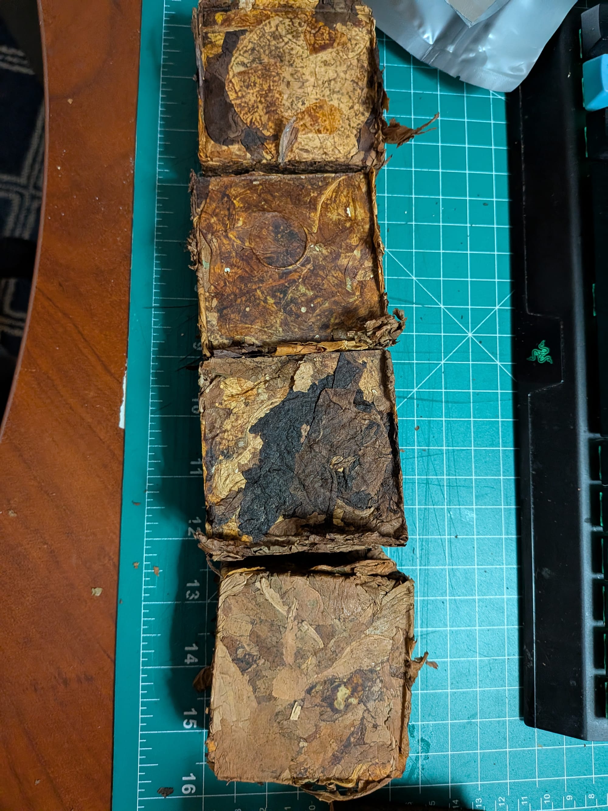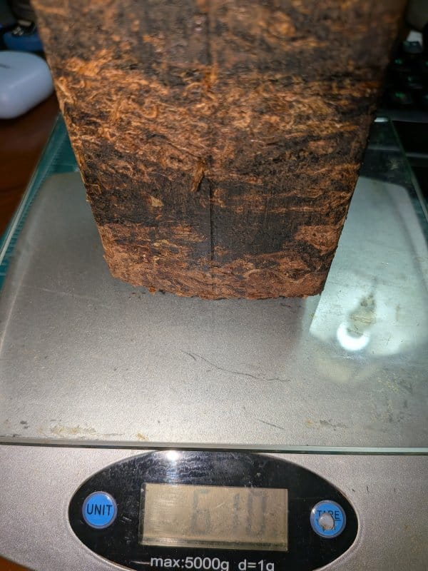 So I did somethings differently. The image above is only 1 day after pressing the plugs. Earlier this week I pulled some Red Queen Plug that was wrapped with foil and put in mylar and had some books and case of mason jars sitting on it for six months. You can see how dark the plugs became.
