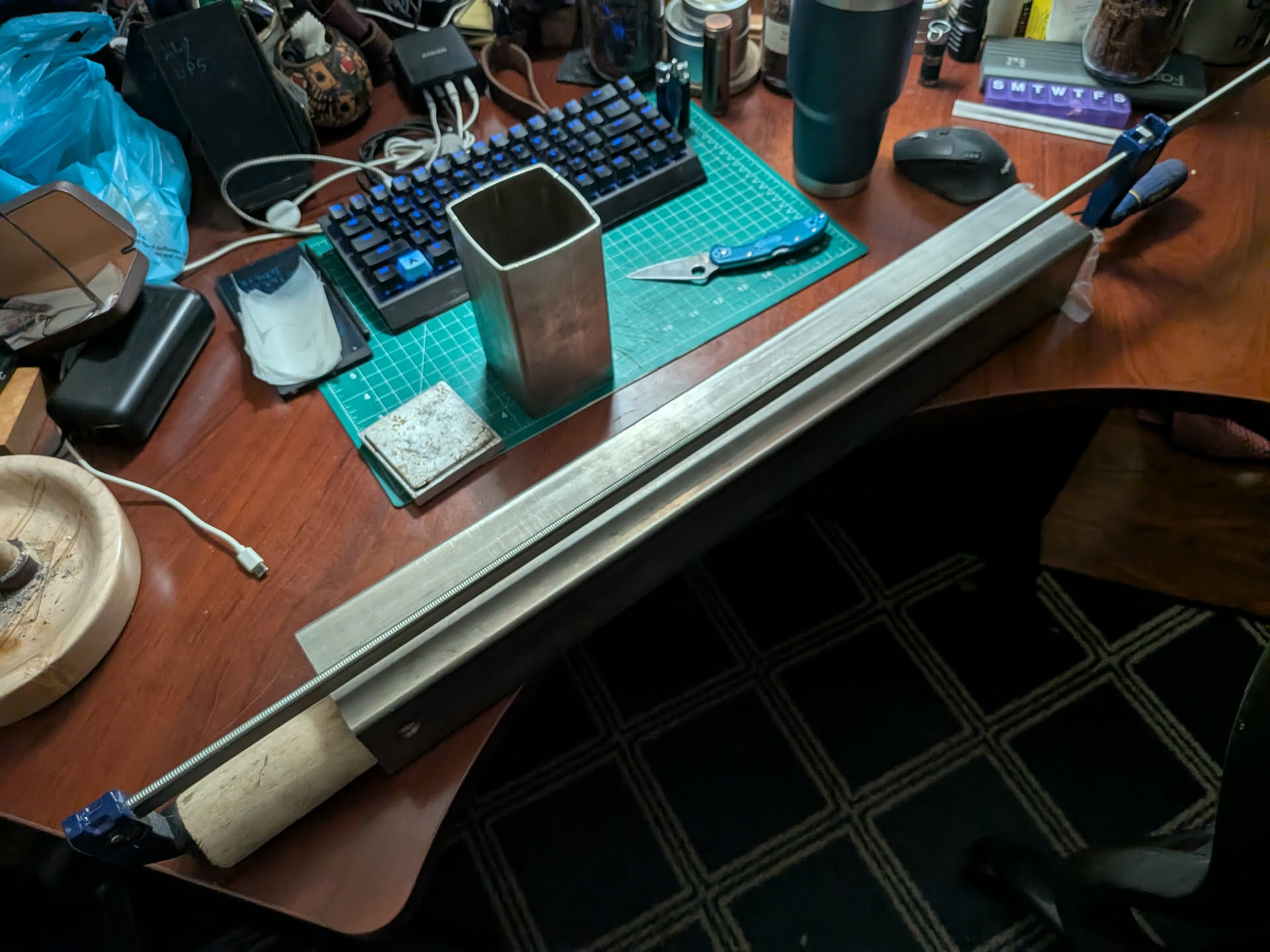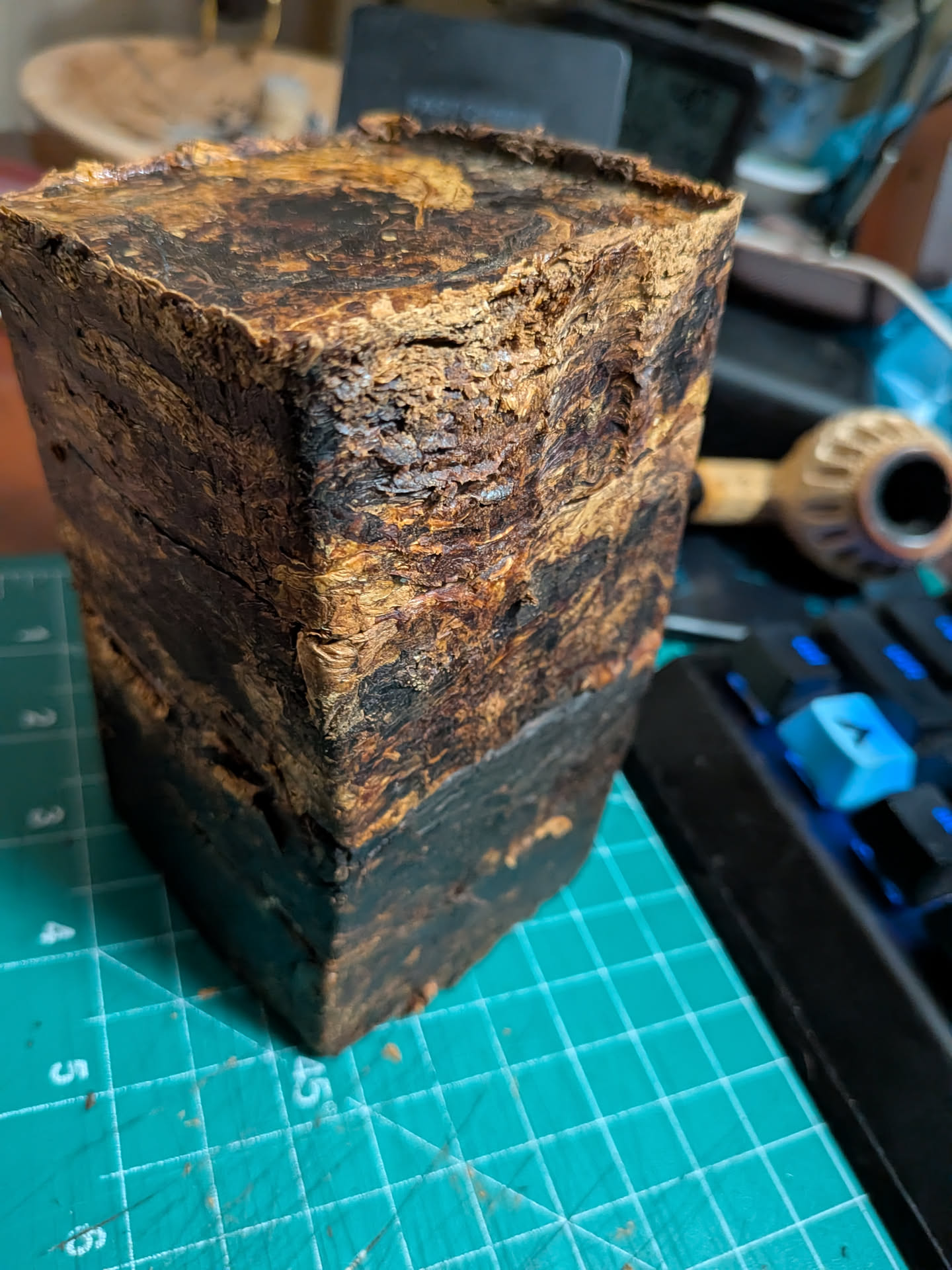 I had enough for a total of 900 grams of plugs and some left over Ripe Flue Cure to make a straight Virginia plug. I pack each bag of blend and space with mycarta high temp cutting board spacers and press with a 12 ton bottle jack in the frame press.