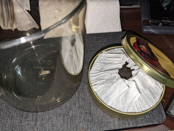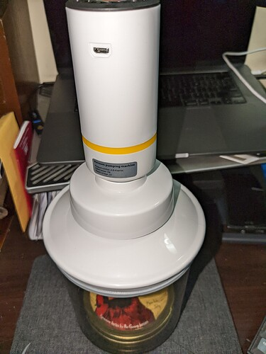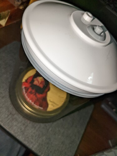 How to reseal an opened tin? Get a vacuum jar that is big enough to hold the tin. This jar I can do five tins at a time and found it on eBay. Simply put the tins in the jar