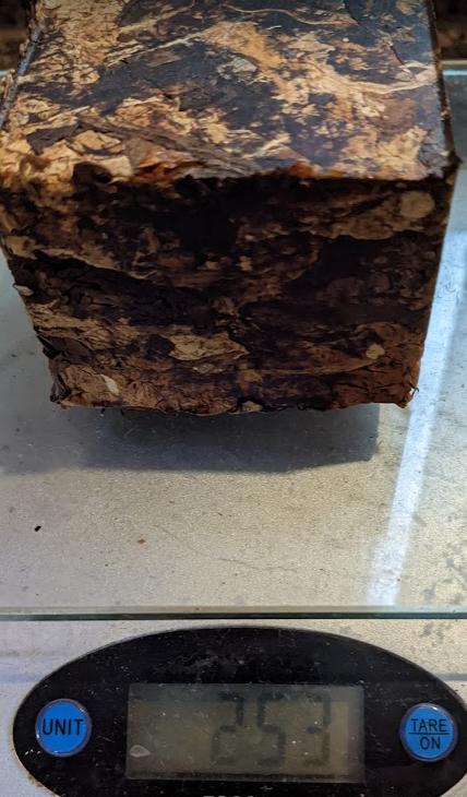 Time to upgrade the tobacco press! Just pulled another dark fired Kentucky / Virginia plug out of the press. Taking 10 days to crank down with a C-Clamp pretty much sucks. So I ordered a 12-Ton Shop Press from Northern Tool. While that was in route I destemmed the rest of my bright and red Virginia, hand ripped and used the blackberry casing. Just tied the top of the plastic bag until I was ready.