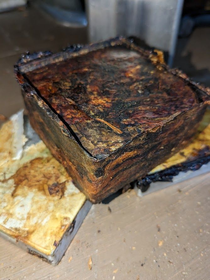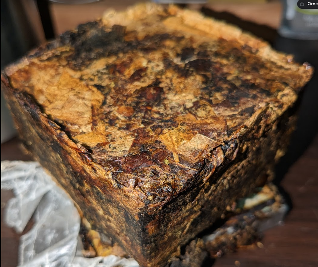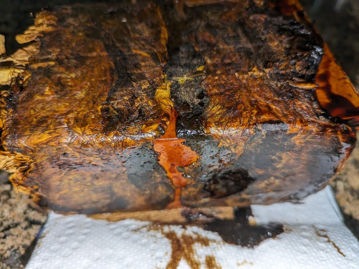 The second plug was not stoved for 4 hours so I could compare the difference betwen the two. It was pressed for a week and did spend a few warm days in the cab of the truck. As you can see it is not nearly as dark as the 4 hours stoved plug at 200F.