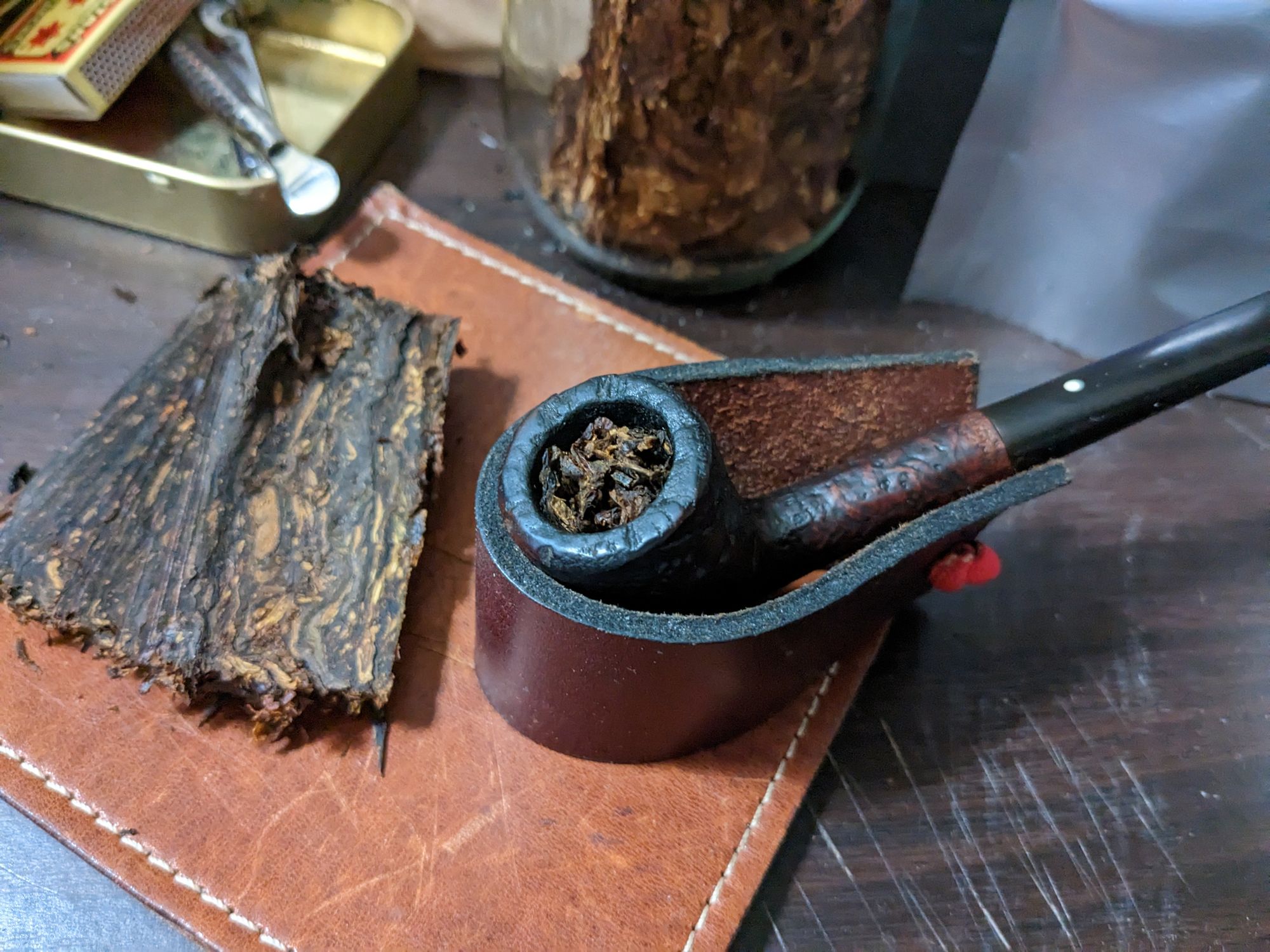 Thought I would try something new and experimental with whole leaf Virginia, Oriental and Perique tobacco plug. Pressing a 200g block consisting of: